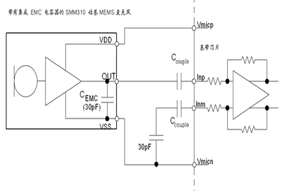 IC與駐極體電容器麥克風內(nèi)信號處理電子元件并無差別,但這是一種已經(jīng)投入使用的技術。在駐極體中,必須添加IC,而在MEMS麥克風中,只需在IC上添加額外的專用功能即可。與ECM相比,這種額外功能的優(yōu)點是使麥克風具有很高的電源抑制比。也就是說,如果電源電壓有波動,則會被有效抑制。
