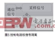 大功率DC/DC變換器控制電路主要由電源模塊、采樣信號(hào)、通訊信號(hào)以及驅(qū)動(dòng)模塊組成,為防止相互間信號(hào)干擾,在設(shè)計(jì)電路的時(shí)候?qū)⑵涓綦x,如圖5所示。