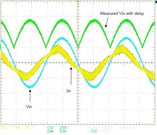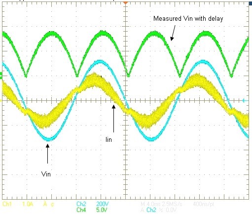 我們知道,PFC電流控制環(huán)路不斷嘗試強(qiáng)制電流與其參考匹配。該參考基本上是AC電壓信號,只是大小不同。因此,如果我們能夠延遲電壓檢測信號,并將延遲后的電壓信號用于電流參考生成,便可以讓電流延遲,來匹配AC電壓信號,從而使PF得到改善。這對一個模擬控制器來說比較困難,但對數(shù)字控制而言,只需幾行代碼便可以實(shí)現(xiàn)。