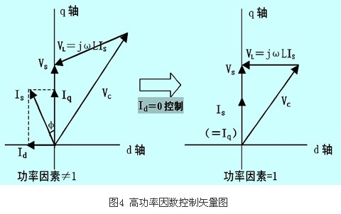 鑒于整流器和逆變器相互之間是分別獨(dú)立運(yùn)行的,它們是分別獨(dú)立可控的,能對(duì)整流器的功率因數(shù)進(jìn)行獨(dú)立控制,而不受馬達(dá)負(fù)荷及運(yùn)轉(zhuǎn)速度的影響,如圖2所示。