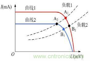 最大功率點A1→最大功率點B1(條件:將系統(tǒng)負載特性由負載1改為負載2)
