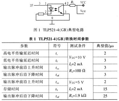 通常情況下,單芯片集成多路光耦的器件速度都比較慢,而速度快的器件大多都是單路的,大量的隔離器件需要占用很大布板面積,也使得設(shè)計(jì)的成本大大增加。在設(shè)計(jì)中,受電路板尺寸、傳輸速度、設(shè)計(jì)成本等因素限制,無法選用速度上非常占優(yōu)勢(shì)的單路光耦器件,在此選用TOSHIBA公司的TLP521-4。