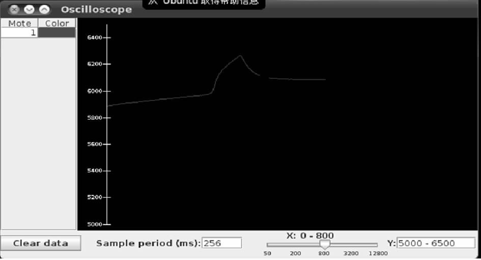 TinyOS是UC Berkeley開(kāi)發(fā)的開(kāi)放源代碼操作系統(tǒng),專為嵌入式無(wú)線傳感器設(shè)計(jì),操作系統(tǒng)基于構(gòu)件的架構(gòu)使得快速更新成為可能,而這又減小了受傳感器網(wǎng)絡(luò)存儲(chǔ)器限制的代碼長(zhǎng)度。TinyOS的構(gòu)件包括網(wǎng)絡(luò)協(xié)議、分布式服務(wù)器、傳感器驅(qū)動(dòng)及數(shù)據(jù)識(shí)別工具。其良好的電源管理源于事件驅(qū)動(dòng)執(zhí)行模型,該模型也允許時(shí)序安排具有靈活性。因此對(duì)于整個(gè)無(wú)線傳感器網(wǎng)絡(luò)的驗(yàn)證采用TinyOS操作系統(tǒng),設(shè)計(jì)為兩個(gè)節(jié)點(diǎn),節(jié)點(diǎn)A負(fù)責(zé)采集溫度濕度數(shù)據(jù),然后將采集到的數(shù)據(jù)發(fā)送到另一個(gè)節(jié)點(diǎn)B,節(jié)點(diǎn)B接收到數(shù)據(jù)后,通過(guò)USB將數(shù)據(jù)傳輸?shù)絺€(gè)人電腦,并將該數(shù)據(jù)通過(guò)圖表顯示,如圖10所示。