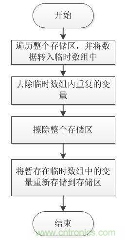 將Flash中存寫的地址值存入臨時數(shù)組中,并根據(jù)地址值判斷是否存在重復(fù)存儲的無效數(shù)據(jù),并將無效數(shù)組失效;