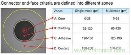 圖2:連接器端面標準被定義到不同的區(qū)域。