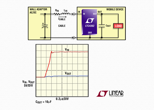 凌力爾特公司 (Linear Technology Corporation) 推出 2.5V 至 5.5V 過壓和過流保護(hù)器 LTC4362,該器件為保護(hù)低壓、便攜式電子產(chǎn)品免受電壓瞬態(tài)和電流浪涌的損害而設(shè)計。電源適配器失效或故障,或者將一個 AC 適配器帶電插入設(shè)備的電源輸入時,可能會發(fā)生過壓。無意間將錯誤的電源適配器插入設(shè)備可能會因過壓或負(fù)電源電壓而引起損壞。LTC4362 運用準(zhǔn)確度為 2% 的 5.8V 過壓門限檢測過壓事件,并在 1us (最大值) 時間內(nèi)快速響應(yīng),以隔離下游組件和輸入。高達(dá) 28V 的過壓保護(hù)由一個內(nèi)部雪崩額定的低 RDS(ON) MOSFET 實現(xiàn),而且在大多數(shù)應(yīng)用中無需瞬態(tài)電壓抑制器 (TVS) 或其它外部組件,就可承受電感電纜瞬態(tài)。此外,LTC4362 監(jiān)視一個內(nèi)部電流檢測電阻器兩端的壓降,以提供準(zhǔn)確度為 20% 的 1.5A 過流門限。LTC4362 目標(biāo)是具有多個電源選項的便攜式電子產(chǎn)品,如通過交流和汽車電池適配器以及USB端口充電的蜂窩電話、MP3/MP4 播放器、數(shù)碼相機(jī)等。