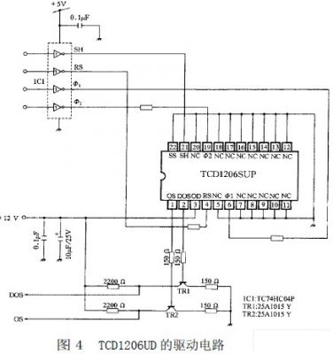 在1MHz 數(shù)據(jù)率情況下工作時,有效像元輸出時間為2.16ms,鋼絲繩直徑信號產(chǎn)生于2.16ms 期間。輸出信號的暗電平可控制在1.0V 左右。而高電平可接近10V,相差比較大。當(dāng)光學(xué)系統(tǒng)調(diào)整得比較好時,圖像邊緣的信號比較陡,測量誤差較小。TCD1206UD 的工作原理和驅(qū)動電路如下: