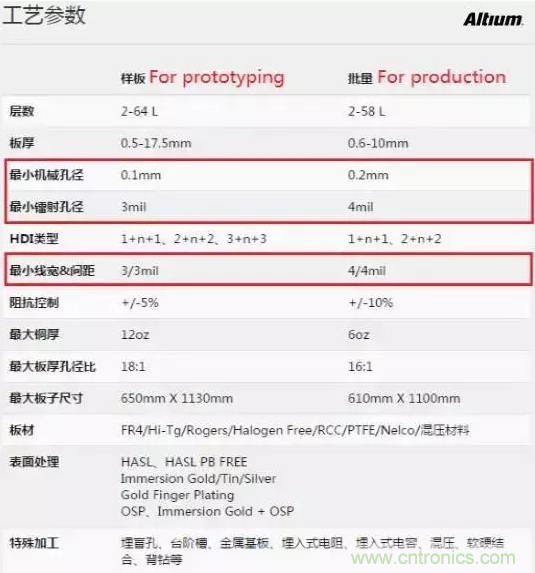 所以我們要學習蘇聯(lián)式的設計經(jīng)驗——在現(xiàn)有生產(chǎn)條件下堆出最優(yōu)良的產(chǎn)品。包括電路板層數(shù),厚度,孔徑,最小線寬線距,銅厚等基本參數(shù)要求;也包括板材類型,表面處理,特殊加工等特別要求。一般在PCB加工的時候,分測試用的打樣加工,以及最終成型的批量產(chǎn)品加工。對于設計師來說,有實際意義并需要嚴格遵守的是批量產(chǎn)品加工的工藝要求。
