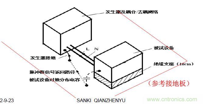 ⑤ 試品與試驗(yàn)儀器之間的相對(duì)距離以及電源連線的長(zhǎng)度都控制在1m(或0.5m),電源線的離地高度控制在0.1m,如有可能,最好用一個(gè)木制支架來(lái)擺放電源線。