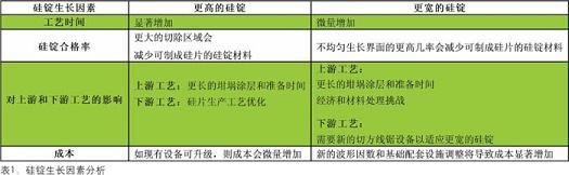 最后,如果硅錠生長和線切割操作之間的生產線平衡無法維持,總體硅片生產力也會下降。生產更多可制成硅片的硅錠材料可能會增加生產能力和爐子的利用率,但如果線切割操作無法處理增加后的材料或波形因數(shù),就可能會出現(xiàn)在制品(WIP)瓶頸或降低線鋸利用率,從而導致硅片生產運營的總體生產力下降。影響硅錠生長的因素分析見表1。