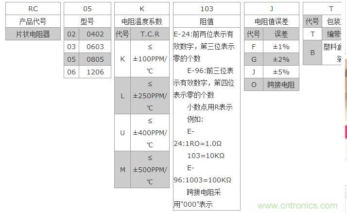 貼片電阻阻值誤差精度有±1%?±2%?±5%?±10%精度,常規(guī)用的最多的是±1%和±5%, ±5%精度的常規(guī)是用三位數(shù)來表示。 例512,前面兩位是有效數(shù)字,第三位數(shù)2表示有多少個零,基本單位是Ω,這樣就是5100歐,1000Ω=1KΩ,1000000Ω=1MΩ 。為了區(qū)分±5%,±1%的電阻,于是±1%的電阻常規(guī)多數(shù)用4位數(shù)來表示 , 這樣前三位是表示有效數(shù)字,第四位表示有多少個零4531也就是4530Ω,也就等于4.53KΩ。B5X,D1B,47R,24R,12D,30C不是 常規(guī)的標注?必須找生產(chǎn)廠家的規(guī)格書?貼片電阻有功率的大小如0805?1206等1/4W 1/2W電阻當然還有其他功率如1/8W的,大致上也就這三種最常見了。