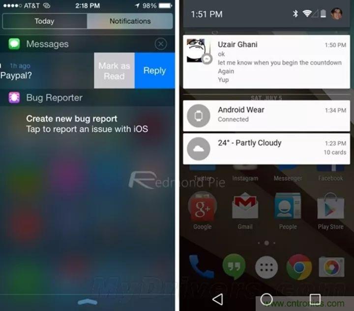 比如安卓系統(tǒng)是有一個和 iOS 一樣的統(tǒng)一推送服務器,但由于缺少谷歌服務框架,所以各 App 開發(fā)商都自己推送消息,導致 App 一直常駐后臺,這也是為什么大家覺得安卓機沒蘋果機流暢的主因之一(當然也可以嘲諷蘋果機是假后臺機制)。