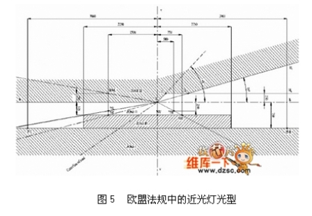 光學(xué)設(shè)計(jì)時(shí)先考慮法規(guī)需求,討論視角與強(qiáng)度關(guān)系,以近燈為例須針對(duì)其特殊的15度揚(yáng)角設(shè)計(jì),如圖5所示。在傳統(tǒng)的燈具設(shè)計(jì)上由先期的利用反射罩配合透鏡刻紋作角度與強(qiáng)度的控制,演變成為利用反射罩直接控制強(qiáng)度角度,也發(fā)展出利用成像方式的魚眼透鏡設(shè)計(jì)法。不論何種的設(shè)計(jì)方式都須先考慮選用光源的特性,特別是角度與強(qiáng)度的光型輸出(Beam pattern),對(duì)傳統(tǒng)的光源而言,大多為柱狀光源,可產(chǎn)生類似蝴蝶外型的光型輸出,進(jìn)而發(fā)展出來與之搭配的透鏡、反射罩、擋板、透鏡等光學(xué)組件。而利用LED作為光源設(shè)計(jì)燈具時(shí),需重新考慮其光學(xué)特性由傳統(tǒng)的柱狀光源變?yōu)槠矫婀庠矗ú煌姆庋b設(shè)計(jì)有不同的光型輸出),進(jìn)而搭配外部的光學(xué)組件而產(chǎn)生不同組合以應(yīng)用于不同產(chǎn)品,依照德國車燈大廠HELLA的設(shè)計(jì)分類,可將光源分為八大類,如圖6 所示。LED目前的單位面積發(fā)光量尚不及鹵素?zé)襞菖c放電式燈泡,想得到相同的流明輸出,LED需要較大的封裝面積。隨著光源輸出面積的增加,光學(xué)設(shè)計(jì)的難度也隨之提升,所以在現(xiàn)有的概念車上,都以模塊化光學(xué)設(shè)計(jì)取代既有的單一燈室設(shè)計(jì),利用多組燈源達(dá)到傳統(tǒng)燈具的照明水平,除了降低光學(xué)設(shè)計(jì)的難度,也增加車體造型的設(shè)計(jì)感。