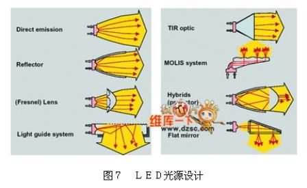 LED對(duì)于消費(fèi)者而言并不陌生,已經(jīng)廣泛的應(yīng)用于車上,依照不同的效能需求選擇適當(dāng)?shù)模蹋牛漠a(chǎn)品,LED相較于傳統(tǒng)光源除了外型不同外,效能輸出與光型輸出亦大不相同,應(yīng)用于頭燈時(shí)將面臨光學(xué)設(shè)計(jì)與散熱設(shè)計(jì)等不同于傳統(tǒng)燈具之設(shè)計(jì)概念。然而也因其不同于傳統(tǒng)光源之特性,當(dāng)與車體成功整合克服技術(shù)難題后,將為車型開創(chuàng)嶄新的設(shè)計(jì)概念。