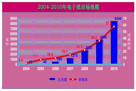 表1 2004-2010年電子紙市場規(guī)模(資料來源:富士chimera總研)