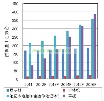 未來的市場動向方面,筆記本電腦市場的年增長率有望達(dá)到10~15%左右,平板電腦市場將憑借低價(jià)格和輕便、應(yīng)用程序與智能手機(jī)的通用性,繼續(xù)保持大約30~40%的增長率,到2016年,平板電腦的供貨量預(yù)計(jì)將超過筆記本電腦(圖1)。