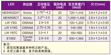 LED技術(shù)持續(xù)快速改進(jìn),制造商在使用新的材料、制造技術(shù)和LED設(shè)計(jì)來為同等大小的電流釋出更大的光輸出,這樣一來,幾年前需要4個LED進(jìn)行背光的顯示屏如今可能采用2個LED就能實(shí)現(xiàn)同樣的背光亮度。不僅如此,過去通常使用冷陰極熒光燈(CCFL)進(jìn)行背光的4到7英寸較大顯示屏,如今正在轉(zhuǎn)向使用LED進(jìn)行背光。此外,LED的正向電壓正趨向更低。因此,不僅需要考慮驅(qū)動器制造商的數(shù)據(jù)表曲線上的驅(qū)動器效率,還需要基于采用所選LED對驅(qū)動器進(jìn)行的評估來予以考慮。表1列舉了幾款LED的一些重要規(guī)范,顯示了這些LED在正向電壓和發(fā)光亮度等方面的差別。需要說明的是,正向電壓范圍的變化較大,這意味著驅(qū)動器的效率應(yīng)該采用LED規(guī)范的極限值來進(jìn)行評估。