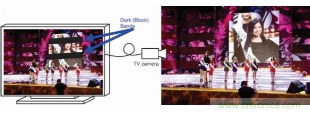 圖 9. 電視攝像機(jī)拍攝另一個電視屏幕引起的黑色條帶