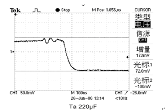 圖10. 16 V/220μF普通鉭電容的測試波形
