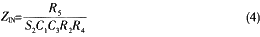 如果把Z4變換為阻抗為1/SC(其中S=jω)的虛擬元件,其它元件為電阻,則驅(qū)動(dòng)點(diǎn)的阻抗為:
