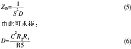 通用阻抗變換器(GIC)的典型電路如圖1所示,其驅(qū)動(dòng)點(diǎn)阻抗ZIN可以表示為: