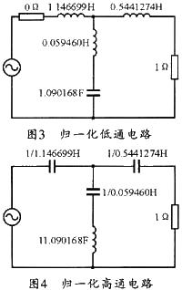 此時(shí)對(duì)應(yīng)的歸一化低通電路如圖3所示,它表明的是低通原型;