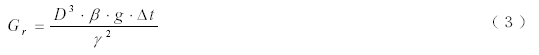 代入數據得Gr=1.1673╳10-7,而普朗特數Pr=0.7085,故Pr× Gr=8.2703╳105,在1╳104~1╳109 之間,判斷流態(tài)為層流。相應的對流換熱系數計算公式為