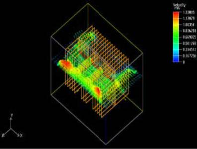 圖3 強迫對流條件下功率管散熱的風速云圖