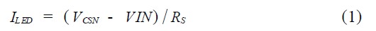 式中:ILED ---流過L ED 的電流;VCSN ---電壓檢測(cè)端電壓;RS ---電流采樣電阻。