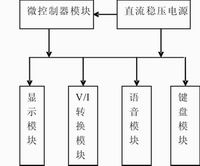 本設(shè)計(jì)采用單片機(jī)作為主要控制部件,通過鍵盤預(yù)置輸出電流值并采用液晶模塊實(shí)時(shí)顯示。整個(gè)系統(tǒng)硬件部分由微控制器、電壓-電流轉(zhuǎn)換、鍵盤、顯示、直流穩(wěn)壓電源和語音提示等模塊組成。系統(tǒng)組成框圖如圖1所示。