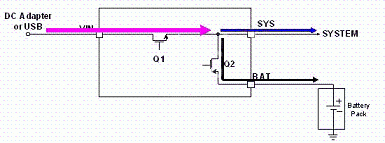 假設(shè)使用5.5V電源供應(yīng)器對單顆1200mAh鋰離子電池進(jìn)行充電,在0.7℃快速充電電流時(shí),且電池電壓為3V的條件下,可以預(yù)估IC運(yùn)作的最大耗電量為,1.762W的耗電最大值,此一功耗會使得熱阻抗60℃/W的3×3毫米QFN封裝溫度溫升127℃,即便環(huán)境溫度0℃時(shí),也已經(jīng)超過所允許的125℃硅芯片操作溫度最大值。若設(shè)定充電電流為0.6A(0.5C),則可降低IC溫升為90度,可以操作于35度的環(huán)境溫度中,因此是較佳的設(shè)定電流。