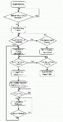 圖6所示為鋰離子電池充電器的標(biāo)準(zhǔn)充電流程,首先充電IC偵測是否有輸出短路或是過載的保護(hù)模式,若系統(tǒng)一切正常接著偵測電池初始電壓是否達(dá)到 3V以上,高于3V者就直接以快充模式進(jìn)行高電流充電,若電池低于3V者,進(jìn)入預(yù)充電模式,以快充的10%進(jìn)行充電,喚醒電池并避免電池?fù)p壞。在預(yù)充電階段,仍隨時(shí)偵測電池電壓,達(dá)到3V后可隨即切入快充模式。