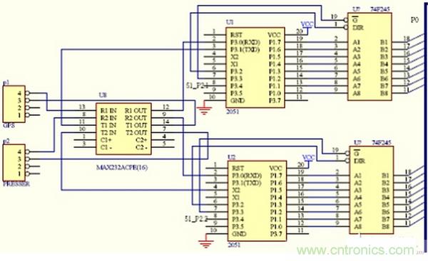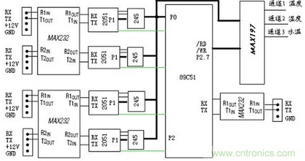 · 各從機(jī)上電初始化后接收傳感器串行數(shù)據(jù),然后通過(guò)P1口接收主機(jī)地址,當(dāng)?shù)刂放c自己相符后,調(diào)整245方向并由245向主機(jī)發(fā)送傳感器數(shù)據(jù),此過(guò)程由握手線(xiàn)負(fù)責(zé)控制。