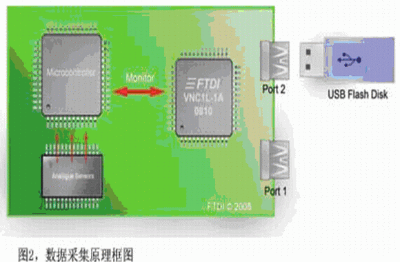 目前市場(chǎng)上有很多種數(shù)據(jù)采集設(shè)備可用于在PC上記錄數(shù)據(jù),如National Instrument的LabVIEW,不過(guò)這類(lèi)設(shè)備的傳感器件開(kāi)始越來(lái)越多地采用USB接口而不是RS232或其他傳統(tǒng)接口。過(guò)去在嵌入式系統(tǒng)中應(yīng)用USB設(shè)備需要性能相對(duì)較強(qiáng)的硬件,要帶有USB Host控制器接口、RTOS以及USB軟件驅(qū)動(dòng),結(jié)果因USB Host功能實(shí)施成本的原因設(shè)計(jì)工程師一直都不太愿意在小型8位或16位MCU系統(tǒng)上增加USB設(shè)備。但隨著最新一代智能USB Host控制器IC的推出,與MCU配合使用不僅可為PC應(yīng)用使用USB數(shù)據(jù)采集設(shè)備,而且還可將數(shù)據(jù)存儲(chǔ)在低成本高容量的閃存盤(pán)上。