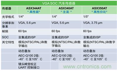 ASX344/340/350AT是用于倒車影像的系統(tǒng)級(jí)芯片(SoC),在單芯片上集成圖像信號(hào)處理器,增強(qiáng)的像素性能提供微光條件下的更高能見度,支持高達(dá)4層的圖像疊加以向顯示系統(tǒng)提供更多的倒車信息,支持?jǐn)?shù)字縮放和平移,并附加光學(xué)中心點(diǎn)矯正功能,這可為客戶提供相機(jī)組裝生產(chǎn)后鏡頭中心點(diǎn)矯正功能,從而節(jié)省成本。這三款圖像傳感器都完全通過AEC-Q100認(rèn)證,并具備-40°C至105°C的寬工作溫度范圍,它們的不同之處在于:ASX344AT還集成魚眼畸變校正功能和提供UART控制接口,定位為“高性能”的方案;ASX350AT的光學(xué)格式為1/5英寸,不同于ASX344/340AT的1/4英寸,定位為“高性價(jià)比”的方案;而ASX340AT定位為“主流”方案。設(shè)計(jì)人員可根據(jù)目標(biāo)客戶的具體需求選擇有針對(duì)性的方案。