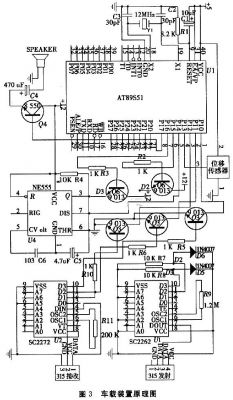按下遙控器的SA時(shí)高亮度LED發(fā)光在黑暗時(shí)可作照明使用,同時(shí)高電輸入10腳編碼后發(fā)送到車(chē)載接收模塊。車(chē)載接收模塊收到信號(hào)經(jīng)解碼芯片解碼后在SC2272的11腳輸出一高電平送到單片機(jī)P1.1端口,經(jīng)內(nèi)部處理后,使揚(yáng)聲器發(fā)出提示聲。